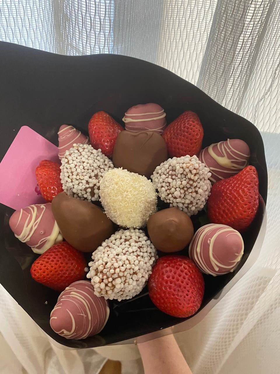 Изысканная композиция для тех, кто ценит стиль и минимализм. Контраст нежных белых роз и воздушной гипсофилы в обрамлении черной упаковки создает утонченное настроение. Такой букет подчеркнет особый статус и станет ярким акцентом любого события.